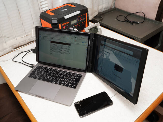 バンコン同様、キャブコンにも生活電源としてサブバッテリーが搭載されているので、車内のコンセントでノートパソコンやタブレット、スマホも充電できて、プリンターなどの電子機器も使用可能。快適なワークスペースに必要な、すべての要素がそろっています。