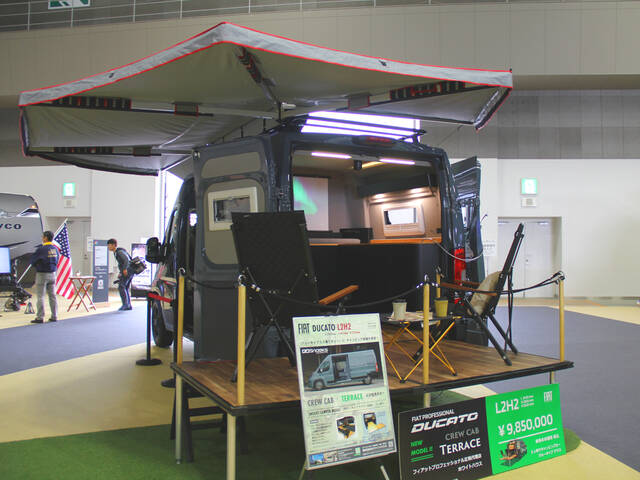 旅先で拡張リビングが作れるキャンピングカー「クルーキャブ テラス」。ベースはフィアット デュカト